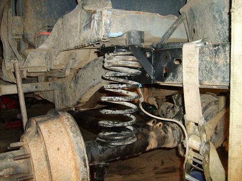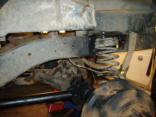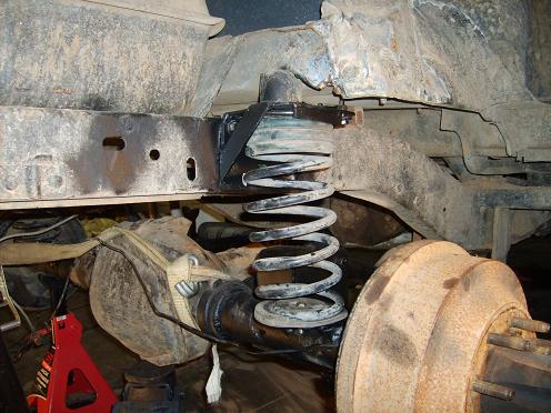 got the coils in after having to drop the old coil buckets down about 2 inches to get the ride hight i wanted . Now im building the pan hard bar and after i do that i will put the air bags in and it should be done till i get new shocks for the front of my dodge so i can use the old pro comp 9000 from it on the rear of the bronco.