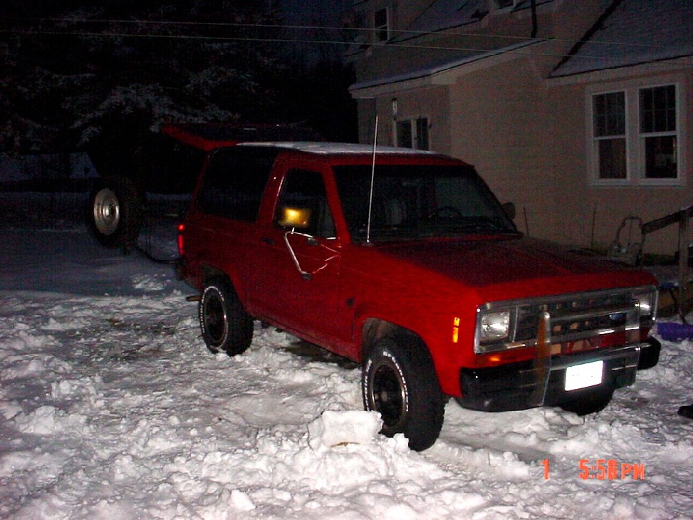 Anyhow, It's an '84 BII with the 2.8L (possibly convert to 302), everything is pretty much stock except the suspension. The guy that had it before I got it changed it around a bit so i'm not sure whats in there. I'd like to go another 3", but may cause problems getting the wheelchair in and out of the truck. Right now it sits on 275X75R/15's, which isn't too bad. I'd rather have it on 32's or 33's. We'll have to see what happens.