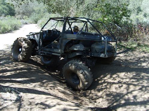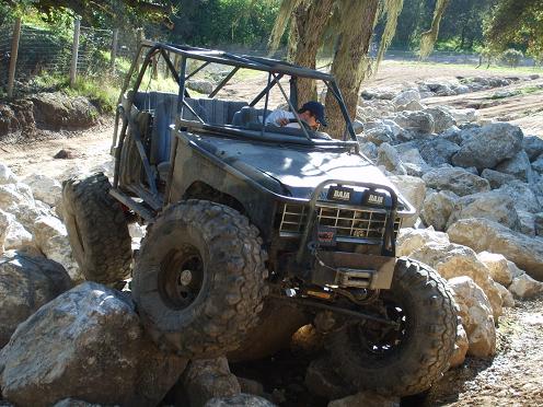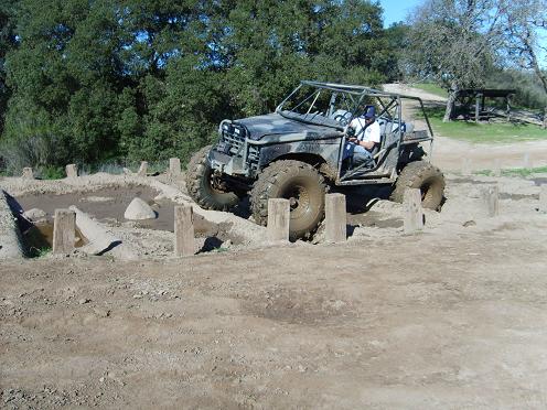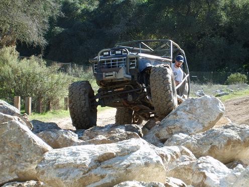 The steet legal rig is my dodge. Its getting 36 sx soon. Its got a leveling kit and wheel pretty damn good. And as far as HP goes i to need more it was floored the whole way! :D I will be getting a new cage at the end of this month and then im going to be rebuilding the 5.0 that will be bored 30 over and new heads and cam and intake and injectors. And about a 100 hp shoot of Nitrous Oxide. Im hoping for about 400 hp. then im getting a C6 to back that.