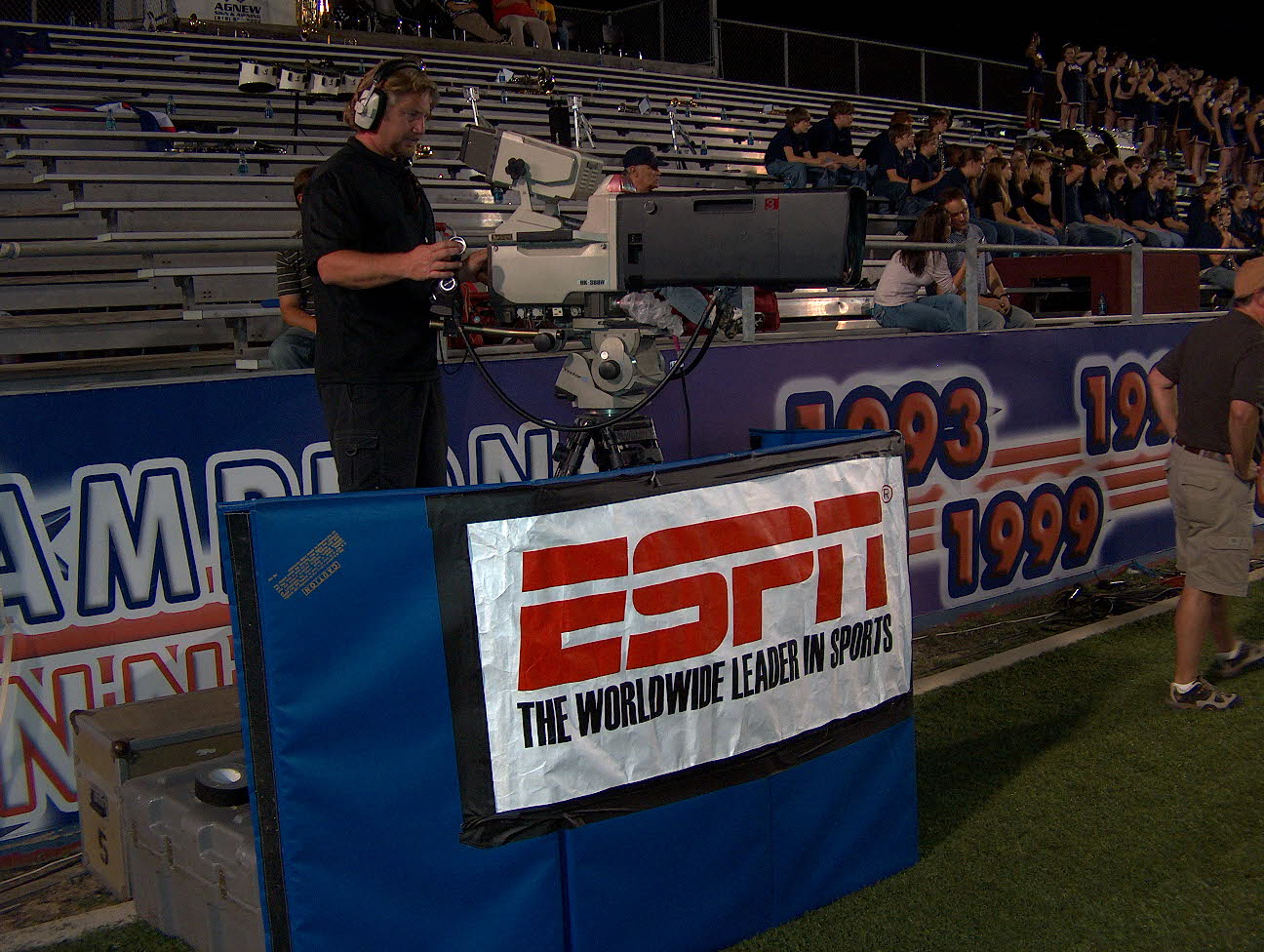 I help keep the truck operational. Make sure audio and video get patched into and out of the truck correctly, Set up the monitor wall for the director, handle patching and signal routing within the truck itself. On the Varsity Inc. shoot I "shaded" cameras, which means I kept the cameras looking good. When you have not so great lighting condiitons like high school stadiums, it' a lot of work to keep 9 cameras all looking the same.