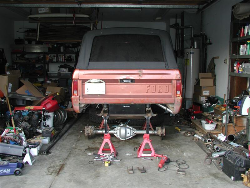 Finally feels like I'm making some progress. Got the 9" pulled out, the Dana 60 stripped of the old perches and shock mounts. Need to do some spring hander repair before I can start assembly. Still need to do the final wiring, put everthing in place and cut resolder and wrap wires. Still lots of little stuff like fender flares, battery box, bumpers, OBA, etc. But those are more resonable weekend projects.
