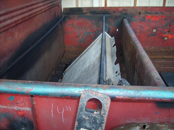 Got the radiator in and cut the hole in the floor for it. Mounted the front devider in the bed too. The bed is all bolted in place. It kinda looks funny because for some reason the rear suspension is highed on the passenger side then the drivers (maybe its from all the time it had the fat ass in the drivers seat!)