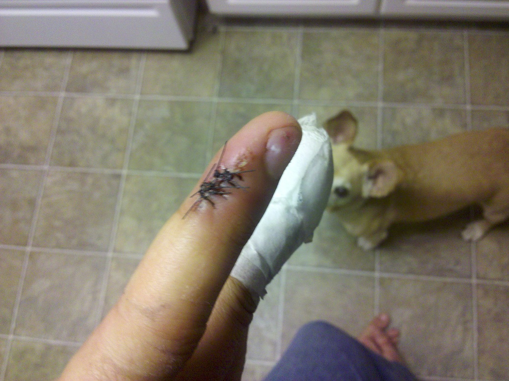 Nice job... Now you need to post pics of the finished stitched up fingers. Nice way he just yanks the nail parts off. Kinda cool. Be careful dude.