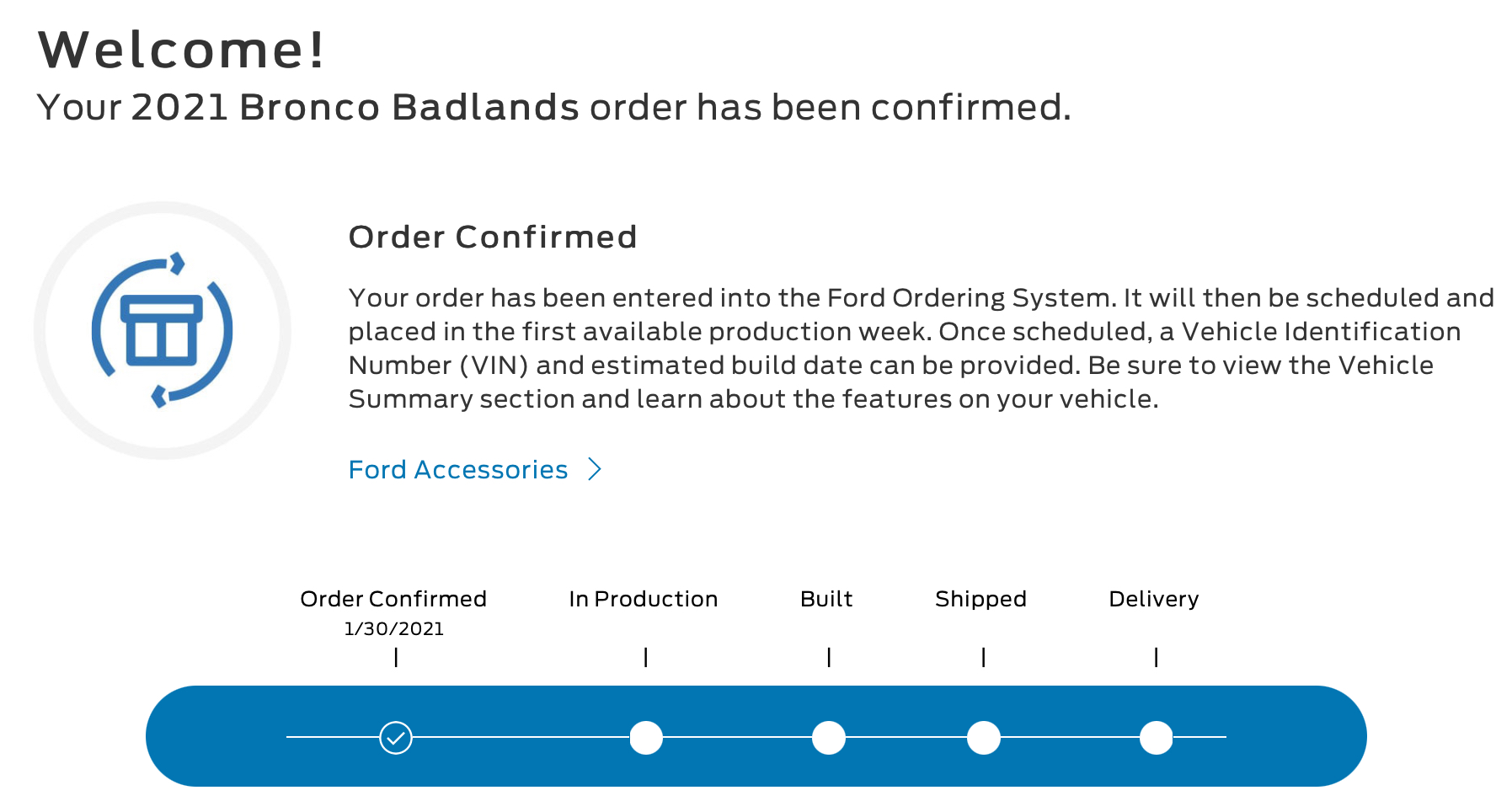 So who here is going for the new Bronco? I reserved a Badlands. I converted my reservation to an order on January 20. On February 2 I got an email from Ford saying that they received my order. Now the waiting game begins to see when it will arrive. Maybe summer, maybe 2022...