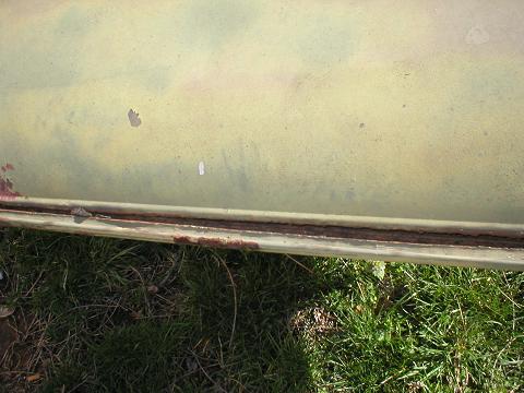 I had it on the trailer so I could do the tranny work and not lay in the gravel. the old top you could see light threw the seams and the front was seperated from the mounting flange. I plan to cut it up and haul it off. might use some of the center metal to make some new floor pans...